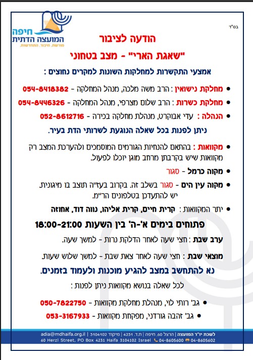 שרי הממשלה אישרו הערב (ראשון) במשאל טלפוני את מצב החירום המיוחד בעורף לעוד 12 יום, עד ליום חמישי כג’ באדר – 12.03.26.