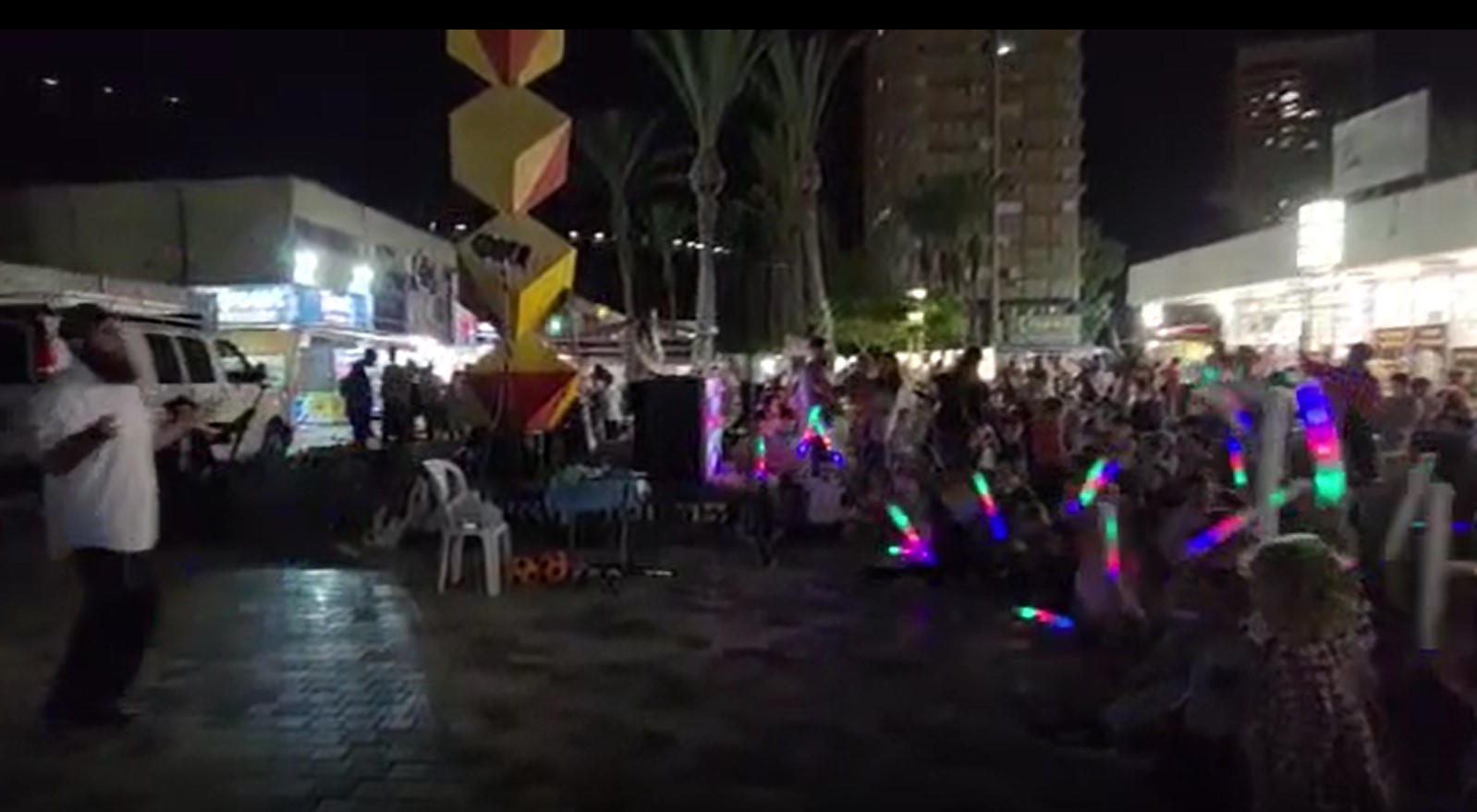 “מאות אנשים, נשים וטף השתתפו וזכו לשמוח יחד ב’הקהל הגדול’ כאשר ברקע היה מסך ענק שהקרין קטעים מיוחדים מהרבי, על המוזיקה היה משה חמו, וישראל קריאף הופיע ושימח את כולם במופע להטוטים.