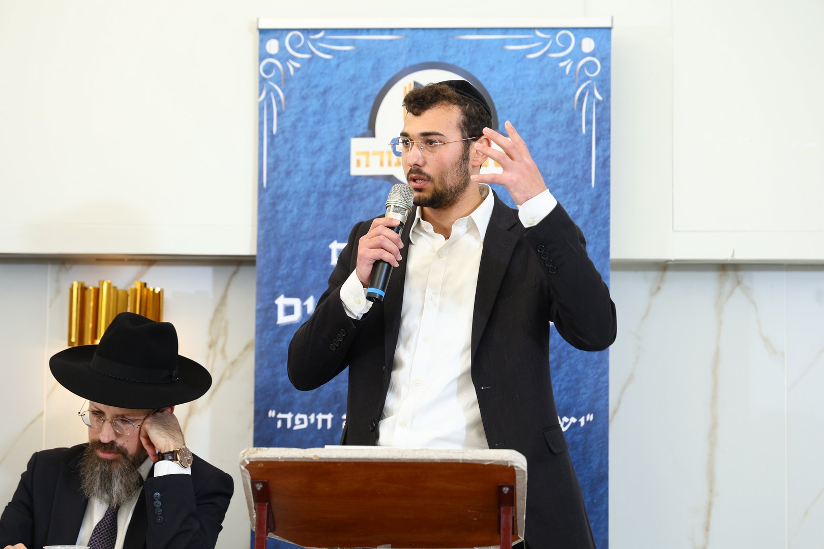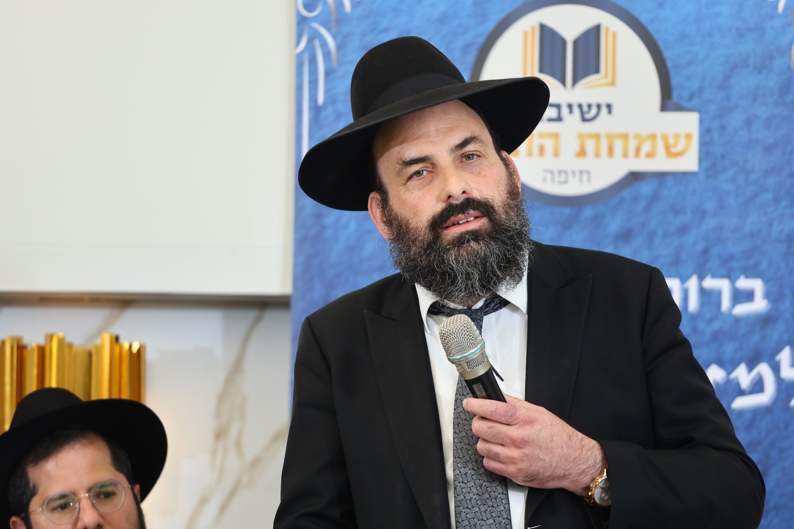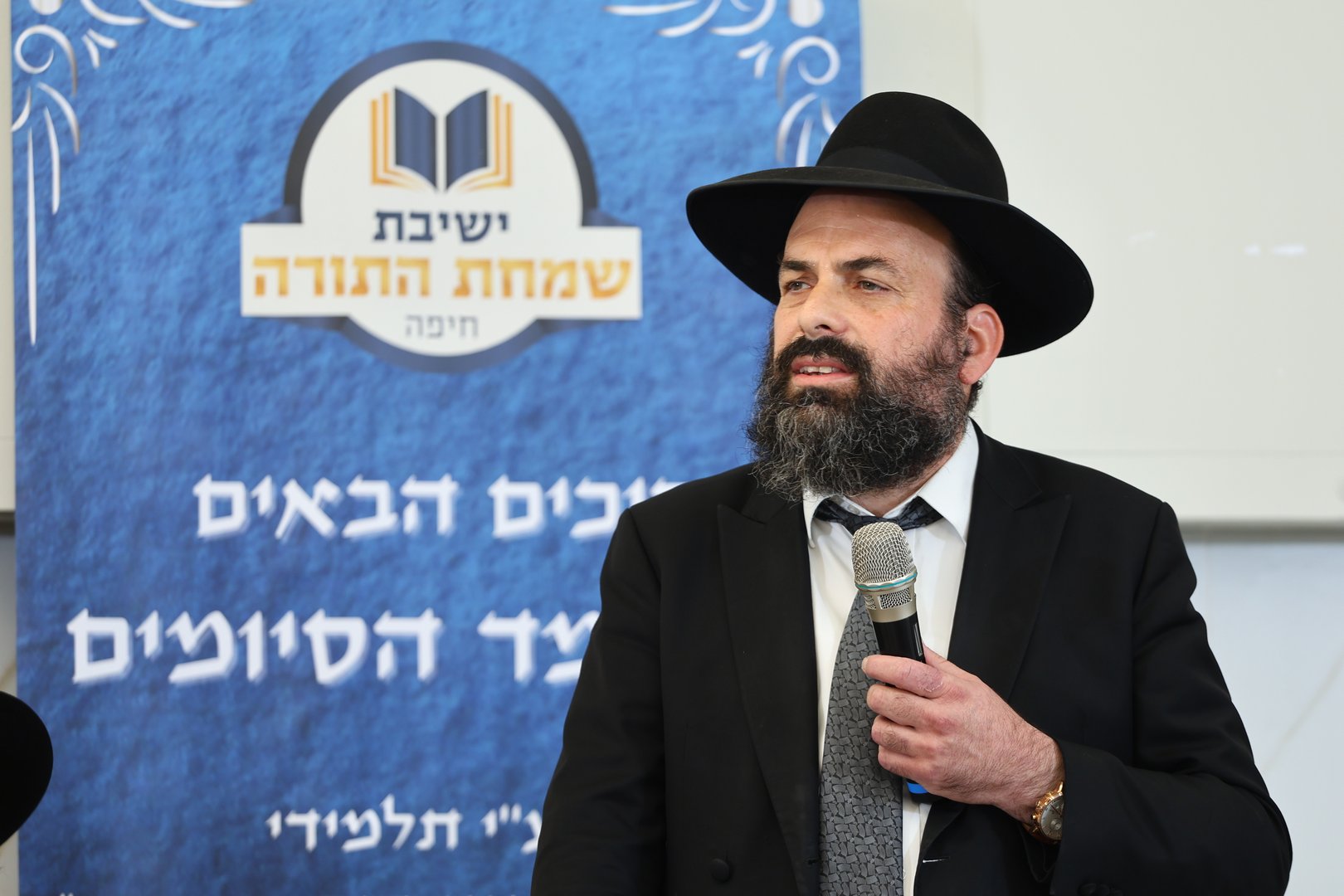 את המעמד כיבד בנוכחותו רב הקהילה החרדית בחיפה הרה”ג הרב במברגר שליט”א אשר מלווה את הישיבה בייעוץ והכוונה, הרב כובד באמירת הסיום, לאחר מכן נשא דברים ועמד על גודל השעה ועל הסייעתא דשמיא המלווה את תלמידי הישיבה לאורך כל השנה בלימוד ובבניין אישי ורוחני.