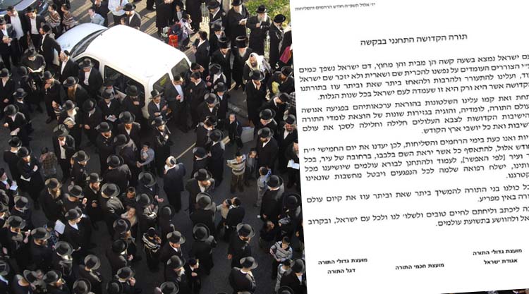 במודעה שהייתה אמורה להתפרסם על דעת כל גדולי ישראל, נכתב כי עם ישראל נמצא בשעה קשה הן מבית והן מבחוץ, ודם ישראל נשפך כמים על ידי הצוררים העומדים על נפשנו להכרית שם ושארית, ותחת זאת קמו עלינו השלטונות בהוראת ערכאותיהם בפגיעה אנושה בעולם התורה, לומדיה, והוגיה בגזירות שונות של הוצאת לומדי התורה מהישיבות הקדושות לצבע, העלולים חלילה וחלילה לסכן את עולם הישיבות ואת כל יושבי ארץ הקודש.