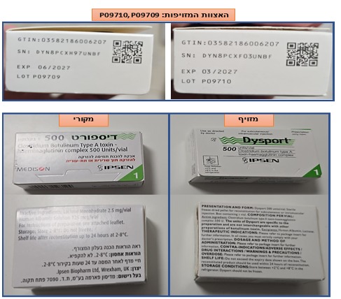 תרופות מזויפות מסוג דיספורט 500 (Dysport®️ 500) נתפסו בבית מרקחת בחיפה, בעקבות בקרה שביצעו האגף לאכיפה ולפיקוח ולשכת הבריאות המחוזית חיפה, במשרד הבריאות במממצאי הבקרה עלה כי בניגוד להוראות החוק, רכש בית המרקחת את התרופות ממקור שאינו מורשה. הנושא נמצא בטיפול הגורמים הרלוונטיים במשרד הבריאות.