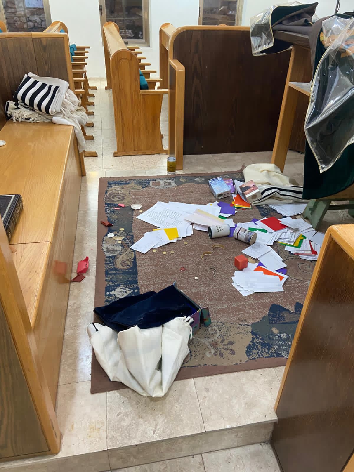 שי, מגבאי בית הכנסת סיפר לאתר 970: כשמתפללי בית הכנסת הגיעו בבוקר נדהמו לגלות את הדלת פתוחה. תוך שניות הובררה התמונה העגומה לנגד עיננו. מתברר שפרצו דרך הקומה התחתונה של בית הכנסת שם יש אולם אירועים. ניפצו את הדלת, עלו לבית הכנסת עקרו שם את הבריח של ארון הקודש, שברו חלקים מהכספת של ארון הקודש. מתחת לארון הקודש יש ארון של טליתות, פרצו אותו וזרקו את הכל על הריצפה.