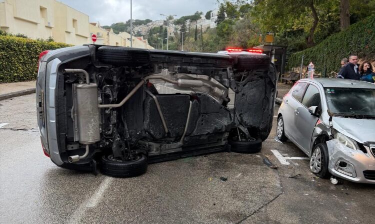 נהגת כבת 75 התהפכה עם רכבה ברחוב הנטקה ברמת בן גוריון בעיר, לאחר שאיבדה שליטה על רכבה כשהחליקה בגלל הגשם.