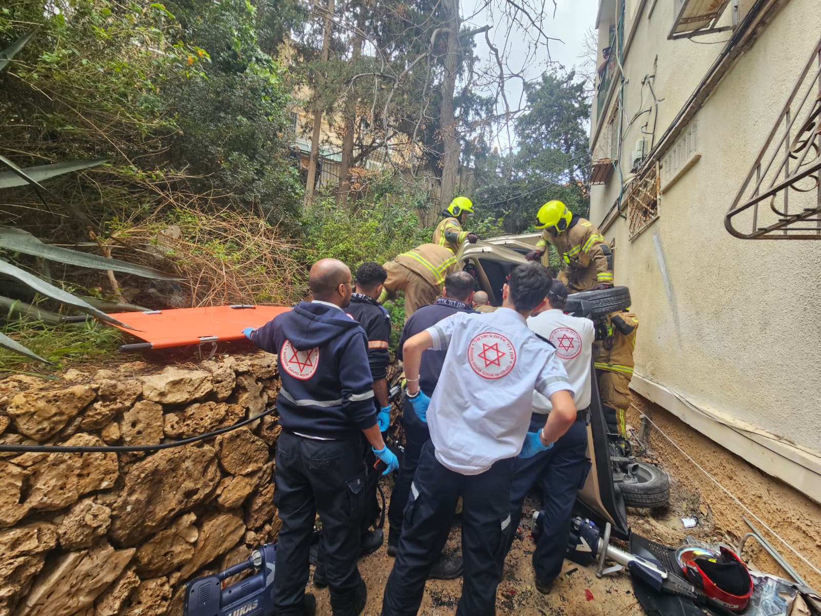 ממד”א נמסר כי בשעה 15:21 התקבל דיווח במוקד 101 של מד”א במרחב כרמל על רכב שהתדרדר ונפל לחצר בניין מגורים ברח’ אדמונד פלג בחיפה. חובשים ופרמדיקים של מד”א העניקו טיפול רפואי ופינו לבי”ח רמב”ם 2 פצועות במצב בינוני, בהם: נערה בת 16 עם חבלות בגב ובחזה ואישה כבת 70 עם חבלת ראש.