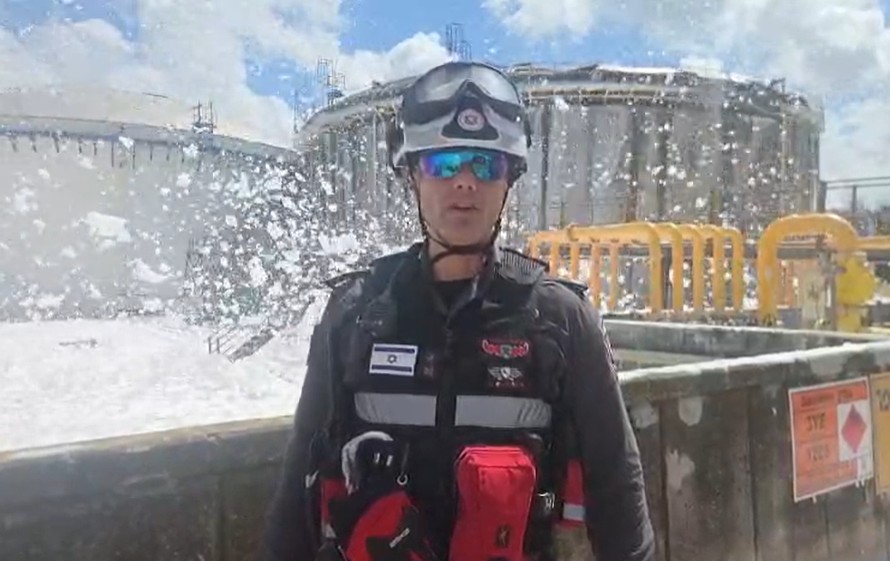 “עם קבלת הדיווח הראשוני על אירוע של נפילה במתקן בז״ן, פגיעה ישירה של טיל במיכל המאוחסן בבנזין, הגענו במהירות לזירה עם צוותי כיבוי מתוגברים של תחנת קריות מחוז חוף ורכב כיבוי מסוג לוייתן. הפעולה הראשונה והקריטית הייתה חבירה מהירה לצוותי החירום המקומיים של בתי הזיקוק. יחד איתם, התחלנו מיד בפעולות כיבוי מוקד הבעירה בעזרת יצירת שכבה עבה של קצפים ובודדנו את הזירה, על מנת למנוע התפשטות האש”.